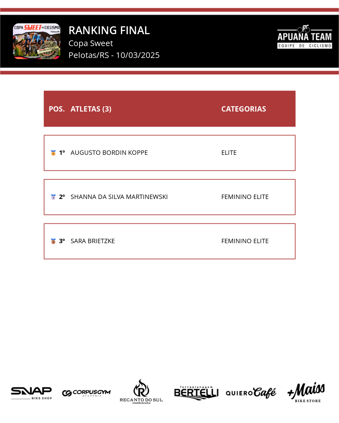 | 🥇 | 1 | AUGUSTO BORDIN KOPPE | ELITE | |