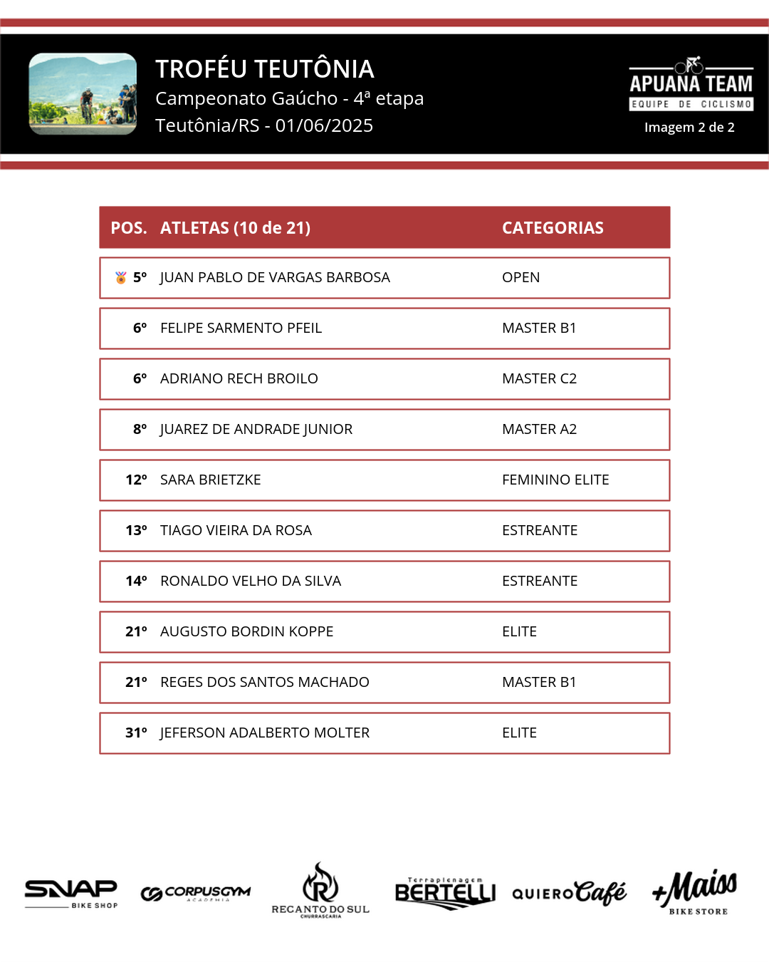 - Pos. Foto Atleta Categoria
